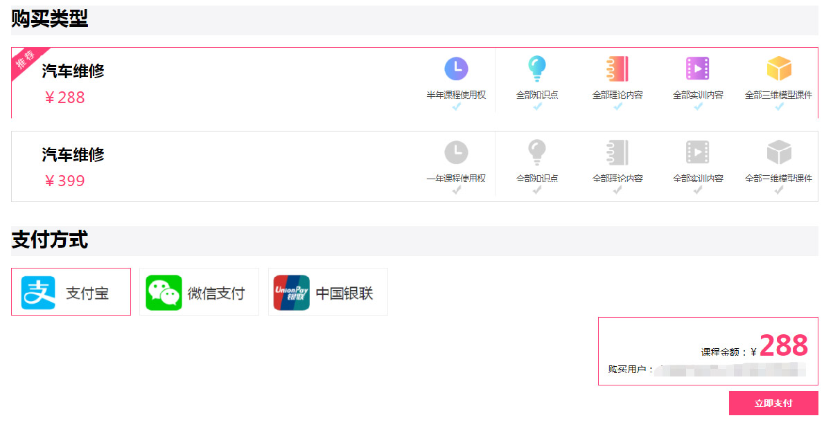 我們100VR教育培訓(xùn)網(wǎng)為您提供的支付方式有支付寶和微信支付。