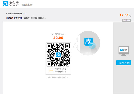 1.支付寶支付:可手機(jī)掃碼或在網(wǎng)頁上登錄支付寶賬號付款,完成后點(diǎn)擊“支付完成”。